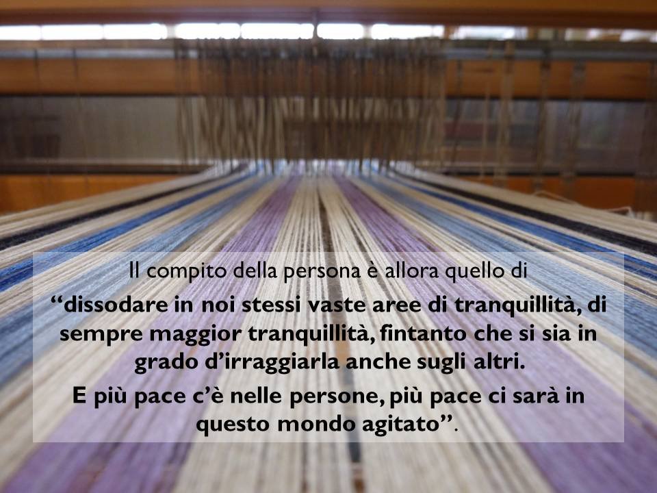 Il tessuto che in questi anni è uscito dai nostri telai ha rivestito di dignità tante storie ferite o spogliate di armonia e ha ridato bellezza a chi, piegato nella ricerca di senso, ha trovato il coraggio di auto trascendersi e rialzarsi e, nella trasparenza della relazione d’aiuto, ha ripreso la fierezza di lavorare ostinatamente come artigiano nel mestiere di uomo.