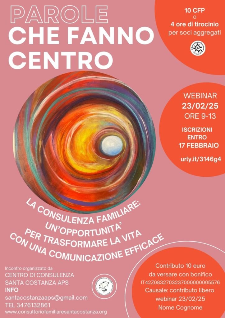 Il Centro di Consulenza Familiare Santa Costanza aps è lieta di invitarvi  al primo dei webinar del nuovo anno che ha preparato per voi!!!!